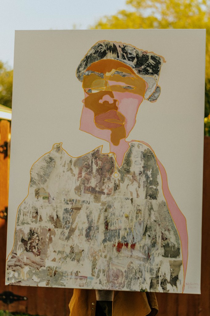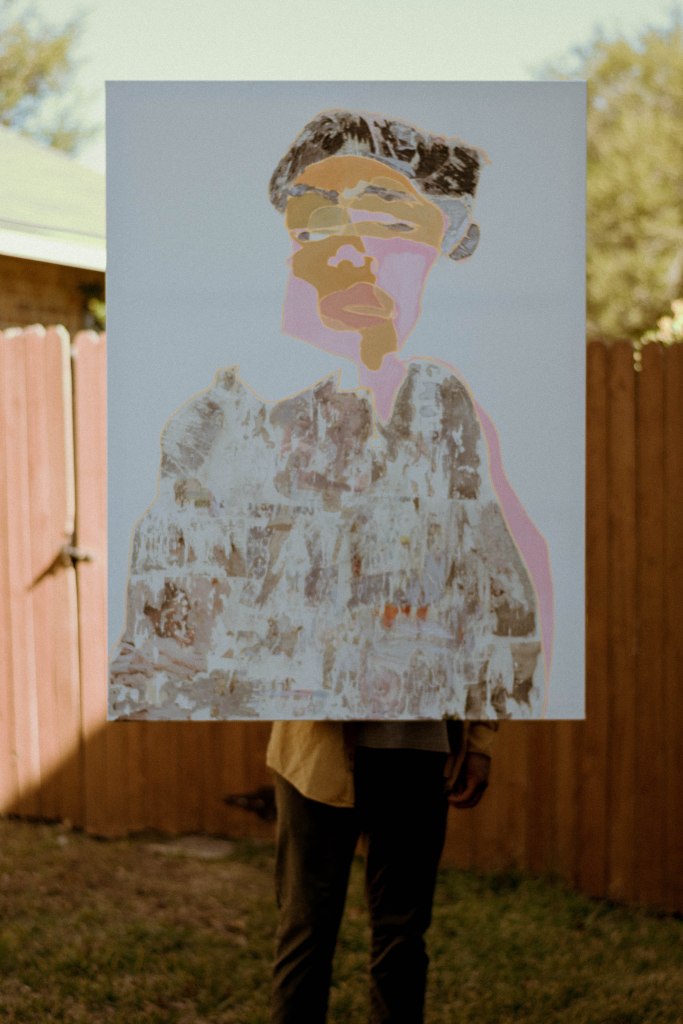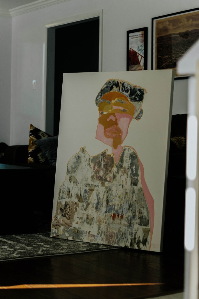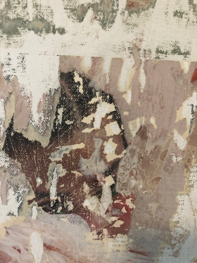 Pink is one of my favorite accent colors. I wanted to only use pinks when I did the painting but after applying pink I decided to reassess my idea. My skin is brown so it was an easy choice to balance out the pink. It is also genetically inspired. Meh. For the shirt area I used pages out of fashion magazines. My clothes in real life are fairly distressed so I tried to model that feeling in the painting. This painting is inspired from the photo I took on New Year’s Eve 2017 going into 2018; Kuala Lumpur, Malaysia with my homies. Teresa did my makeup so I was feeling super wavy. It was my soft boy season and I was looking for a way to express that. C’est la vie.